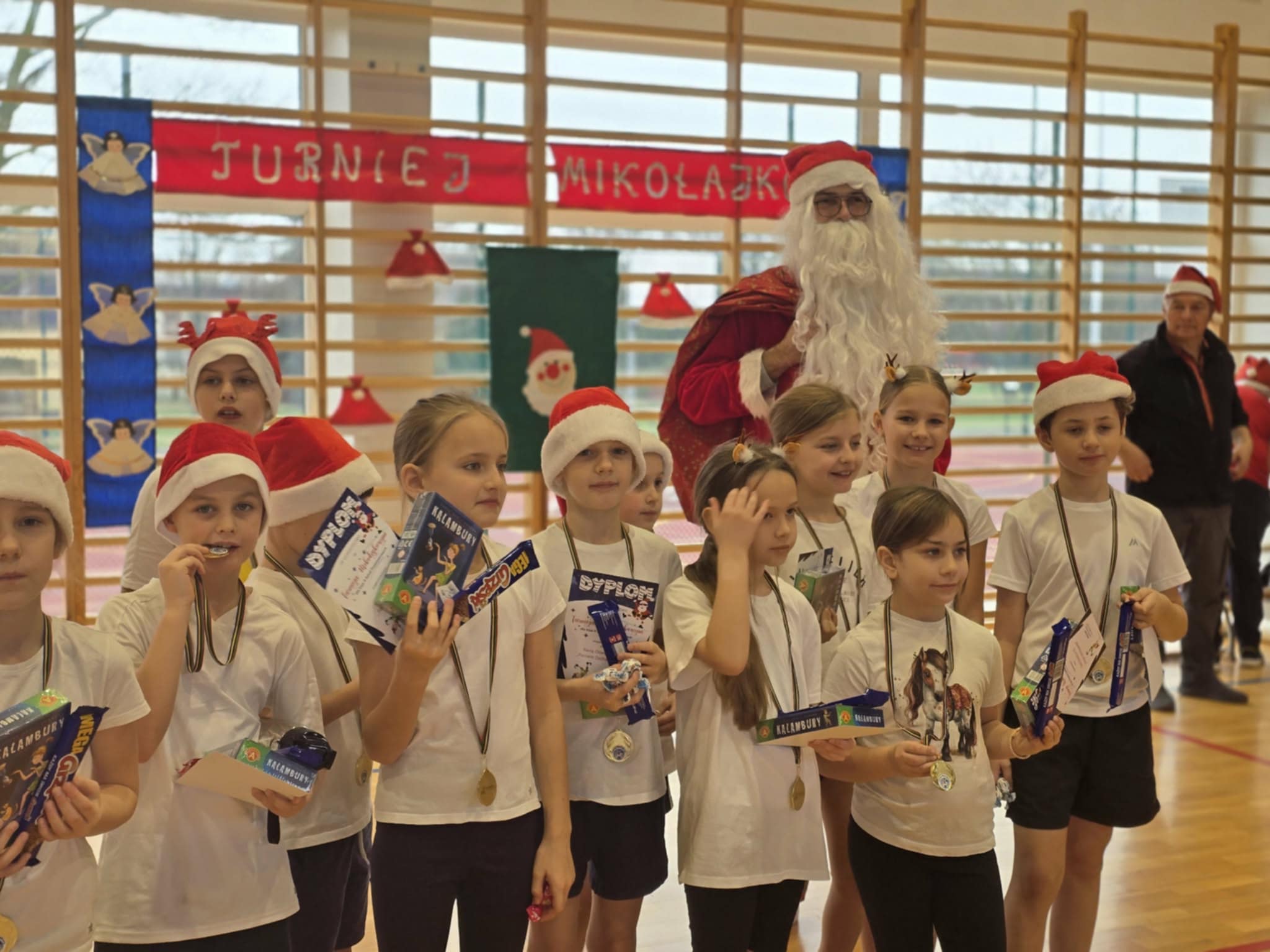 W sobotę 06.12.2025r. o godz. 10.00 odbył się Turniej Mikołajkowy, przygotowany przez Radę Osiedla Nr 10 w SP11 przy ulicy Batorego. Zaproszone do wspólnej zabawy zostały dzieci z klas 2-gich naszej szkoły i SP11. Wszyscy zarówno uczestnicy jak i rodzice na trybunach bawili się wspaniale. Między konkurencjami dzieci prezentowały umiejętności artystyczne. Na koniec wszyscy otrzymali pamiątkowe medale, dyplomy i upominki. DO ZOBACZENIA!!!