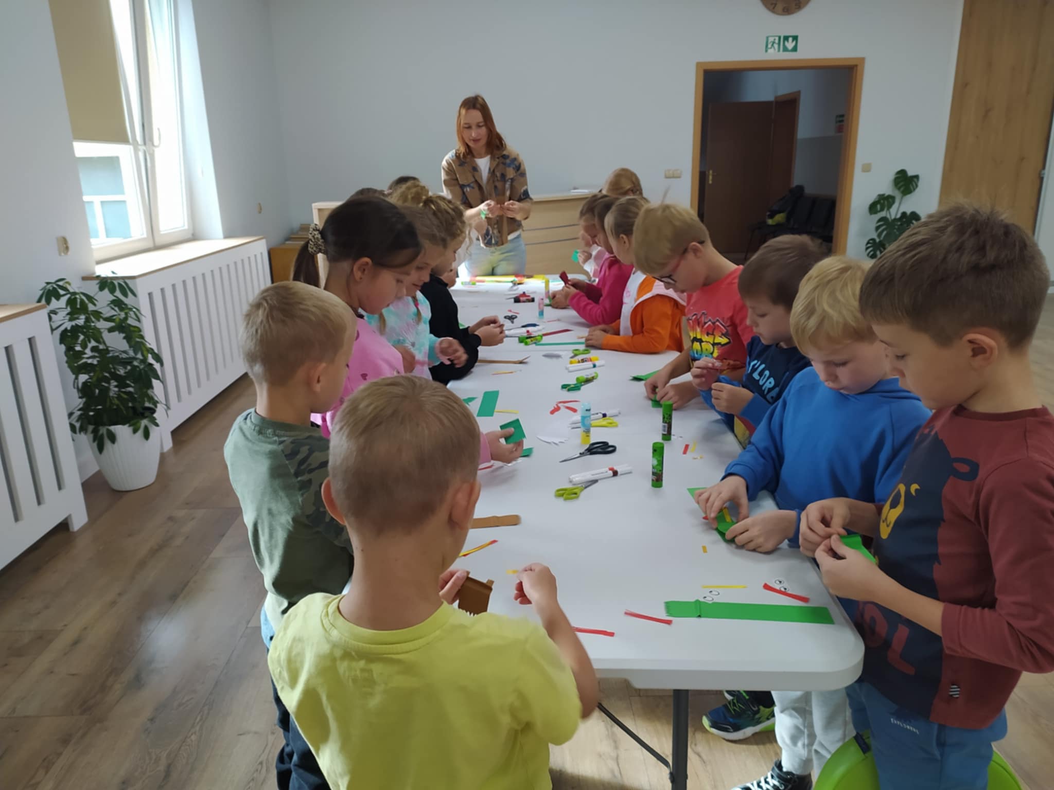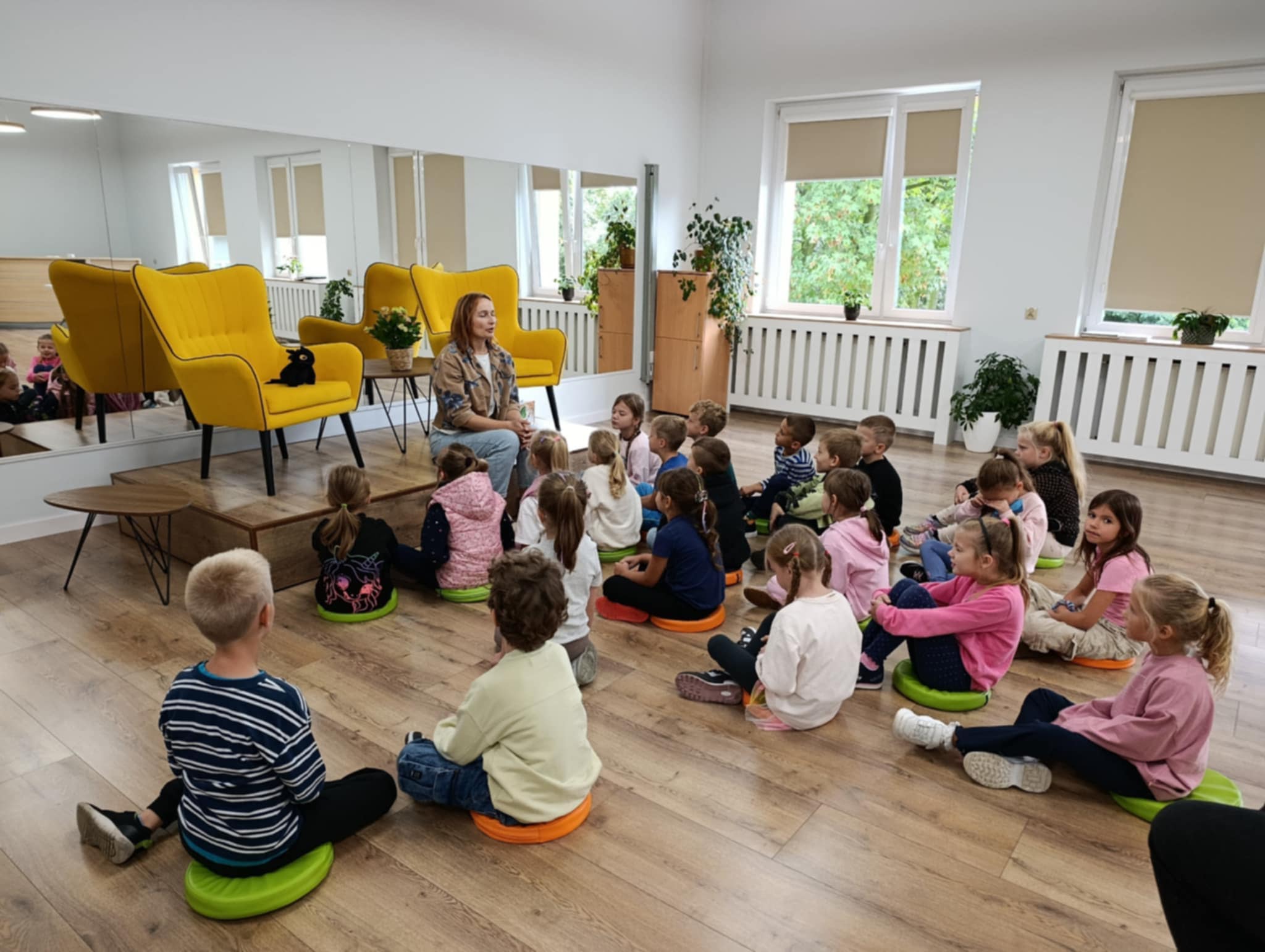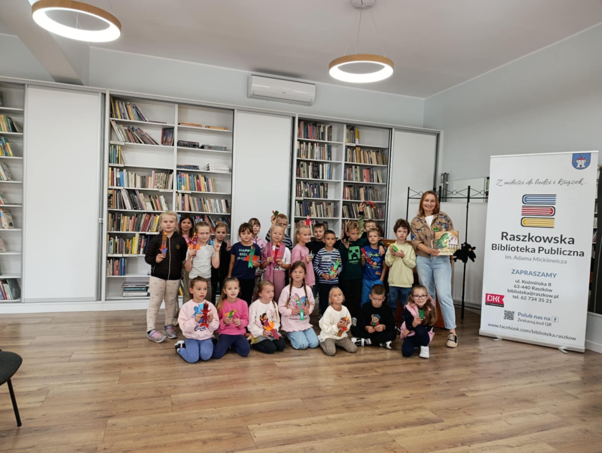 Pierwszym przystankiem była Biblioteka Publiczna im. Adama Mickiewicza, gdzie dzieci odkrywały świat książek. Mali czytelnicy poznawali różne rodzaje książek, obejrzeli teatrzyk kamishibai, a każdy uczeń stworzył własnego smoka-zakładkę. Wspólne czytanie opowieści niosło przesłanie o samoakceptacji, wierze w siebie i współpracy.