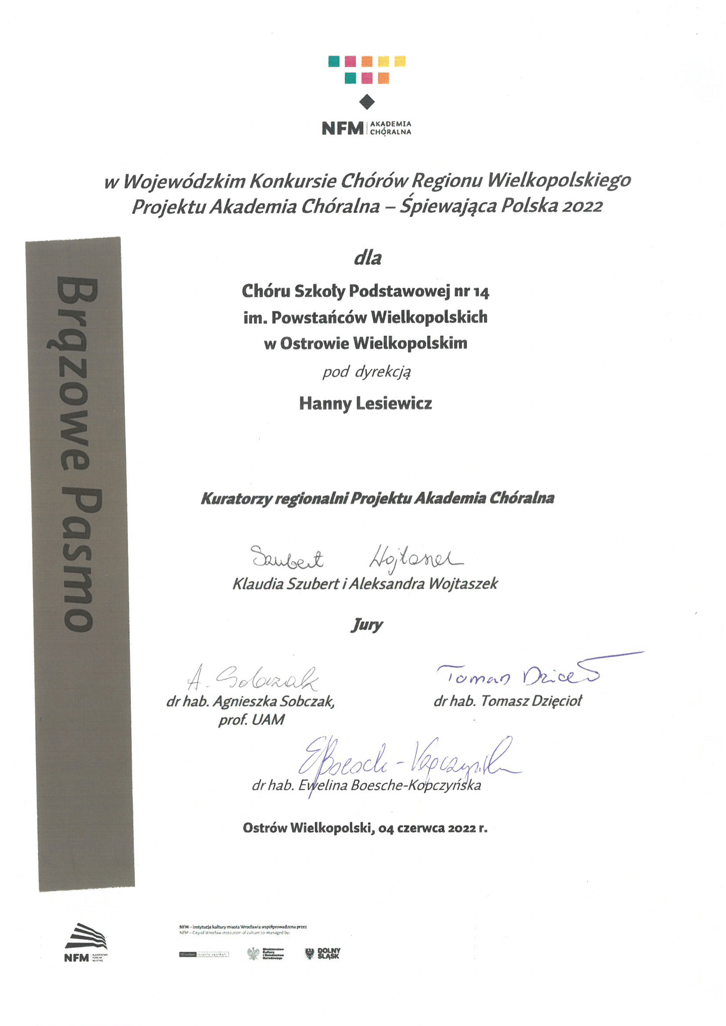 4 czerwca 2022 roku w Ostrowie Wielkopolskim odbył się Wojewódzki Konkurs Chórów Regionu Wielkopolskiego w ramach Ogólnopolskiego Programu Rozwoju Chórów Szkolnych Akademia Chóralna – Śpiewająca Polska 2022. Wystąpiło 12 zespołów.