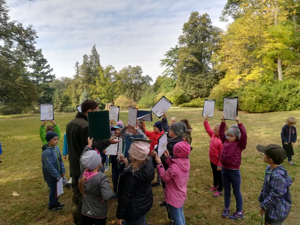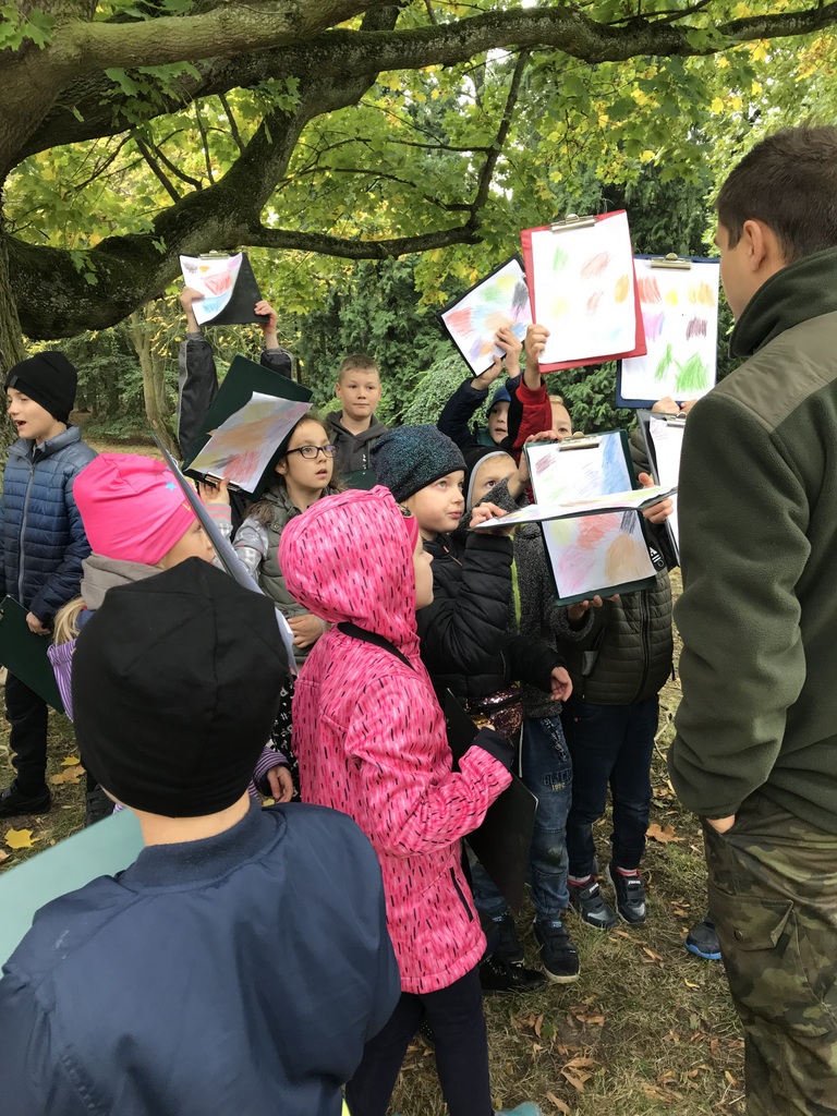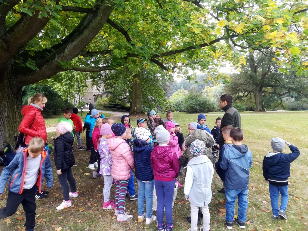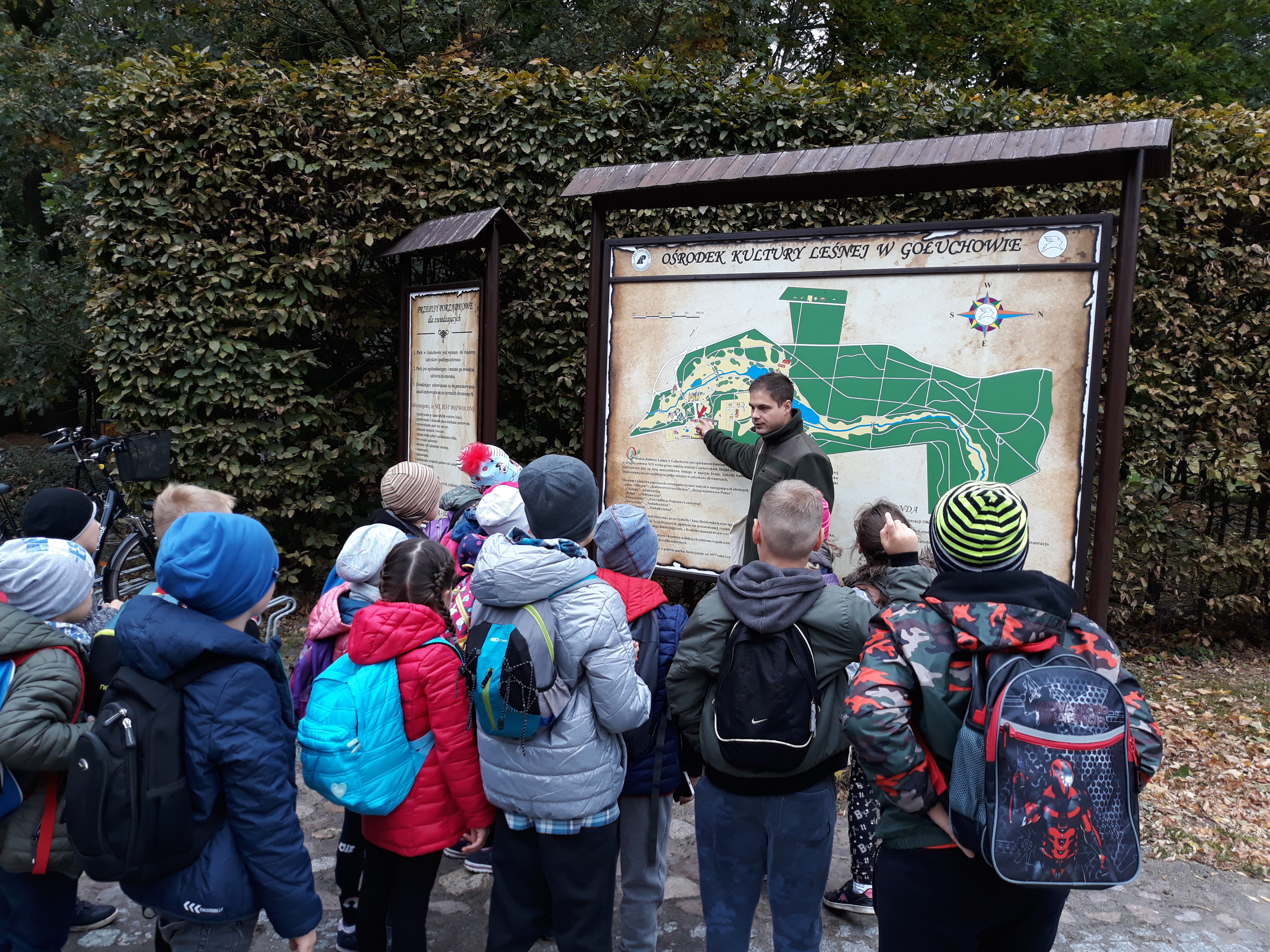 W piątek 5 października 2018 r. uczniowie klas I-II udali się na wycieczkę do Ośrodka Kultury Leśnej w Gołuchowie. Celem wyjazdu były m.in. integracja uczniów, zwiedzanie Muzeum Leśnictwa, udział w warsztatach przyrodniczych oraz wizyta w zagrodzie zwierząt. Uczniowie wzięli udział w warsztatach „Jesienne obserwacje”. Zajęcia prowadzone były w części ozdobnej parku w trakcie jesieni. Na początku dzieci obserwowały barwy występujące w przyrodzie, następnie zbierały cząstki przyrody z użyciem palety barw. Ostatnim punktem było stworzenie dzieła plastycznego z użyciem zebranych materiałów.