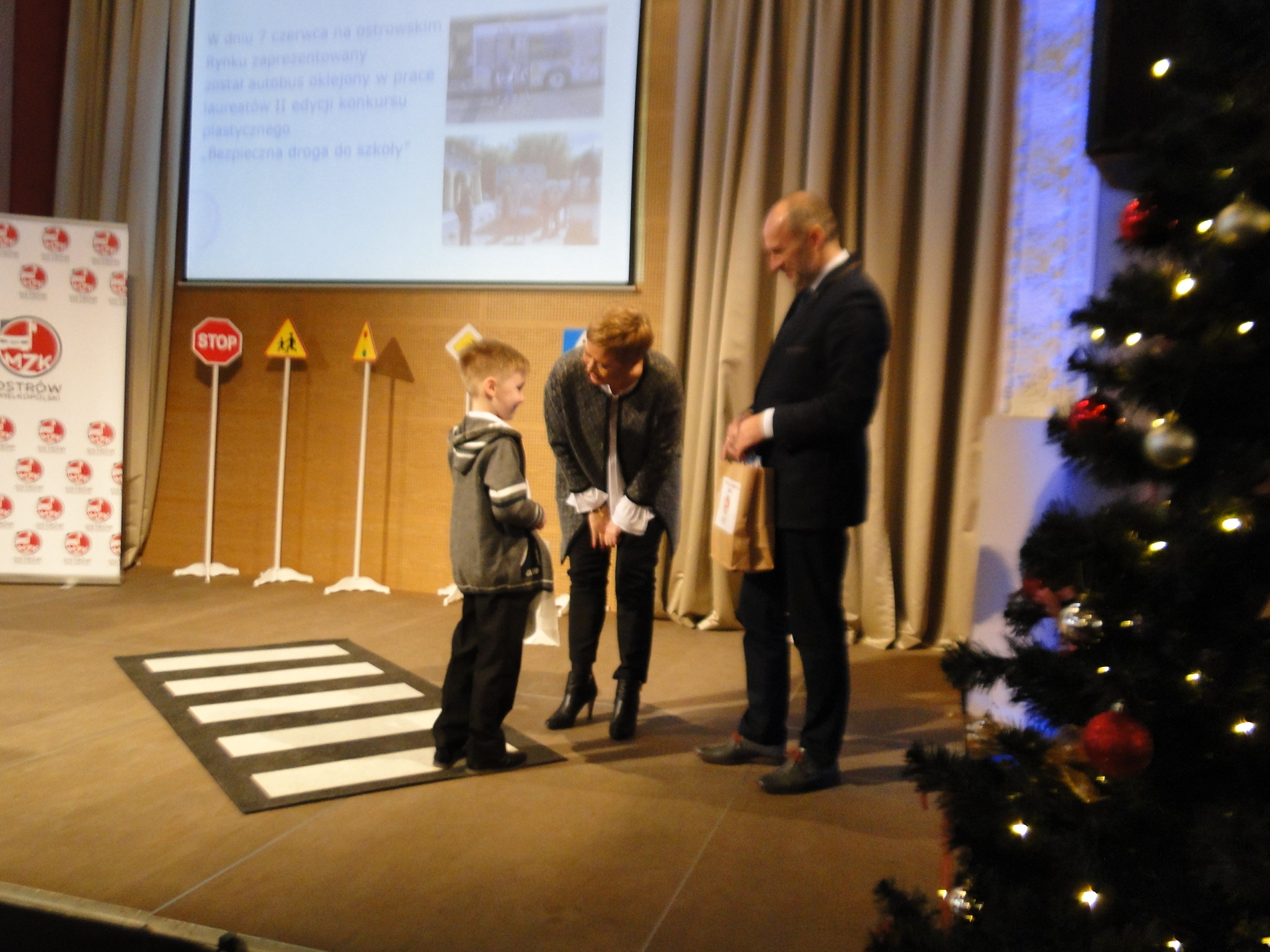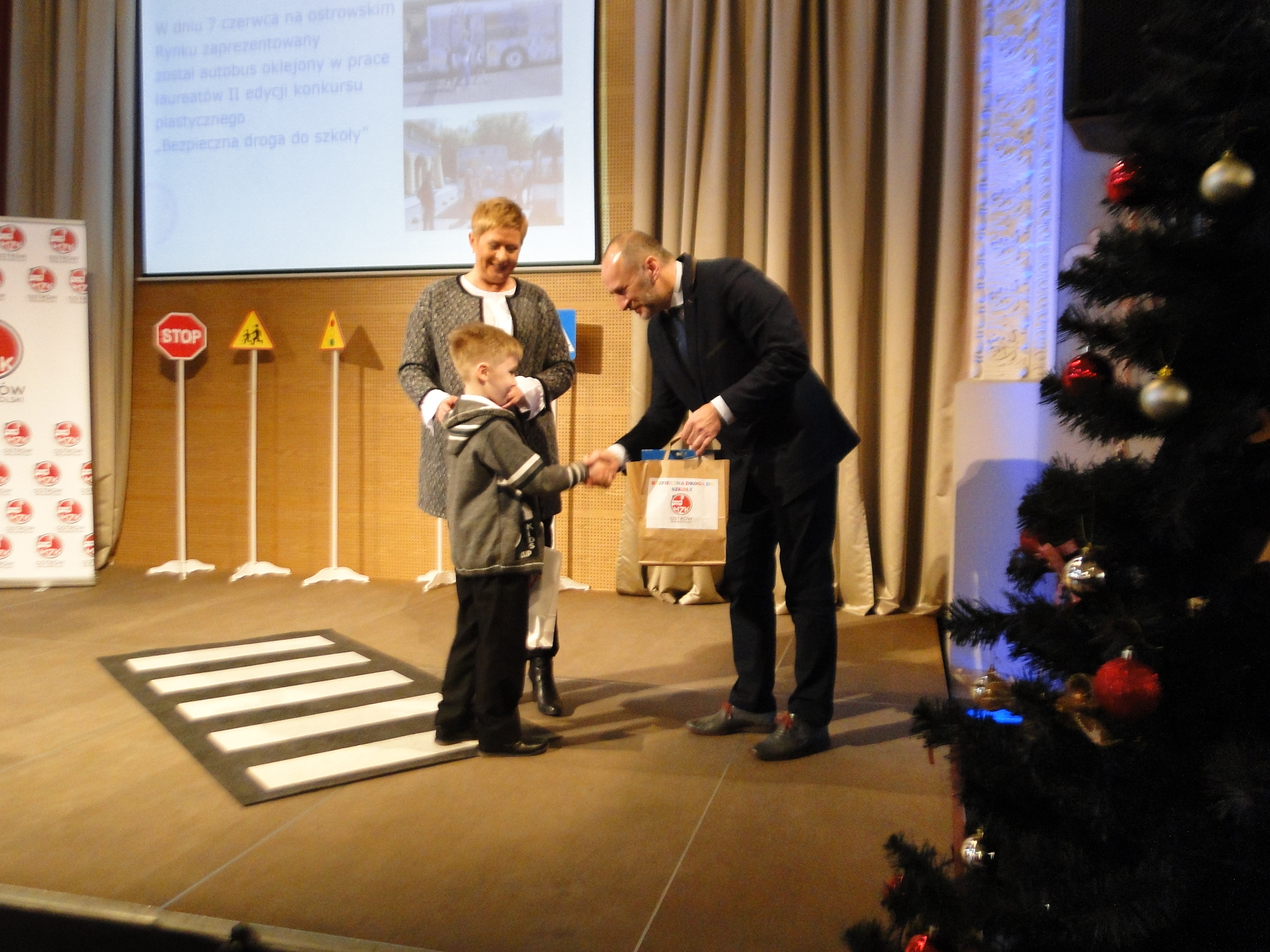 Dnia 9 stycznia br. w ostrowskim Forum Synagoga ogłoszone zostały wyniki konkursu plastycznego organizowanego przez ostrowską spółkę MZK pt. „Bezpieczna droga do szkoły”. Spośród 392 prac nadesłanych na konkurs Prezydent Miasta Ostrowa Wielkopolskiego Beata Klimek uhonorowała 48, których autorami byli uczniowie ostrowskich szkół. Wśród nagrodzonych znalazł się pierwszoklasista naszej szkoły Hubert Łapiński. Gratulujemy młodemu artyście! Wyróżnione prace będą widoczne na ostrowskich autobusach MZK.