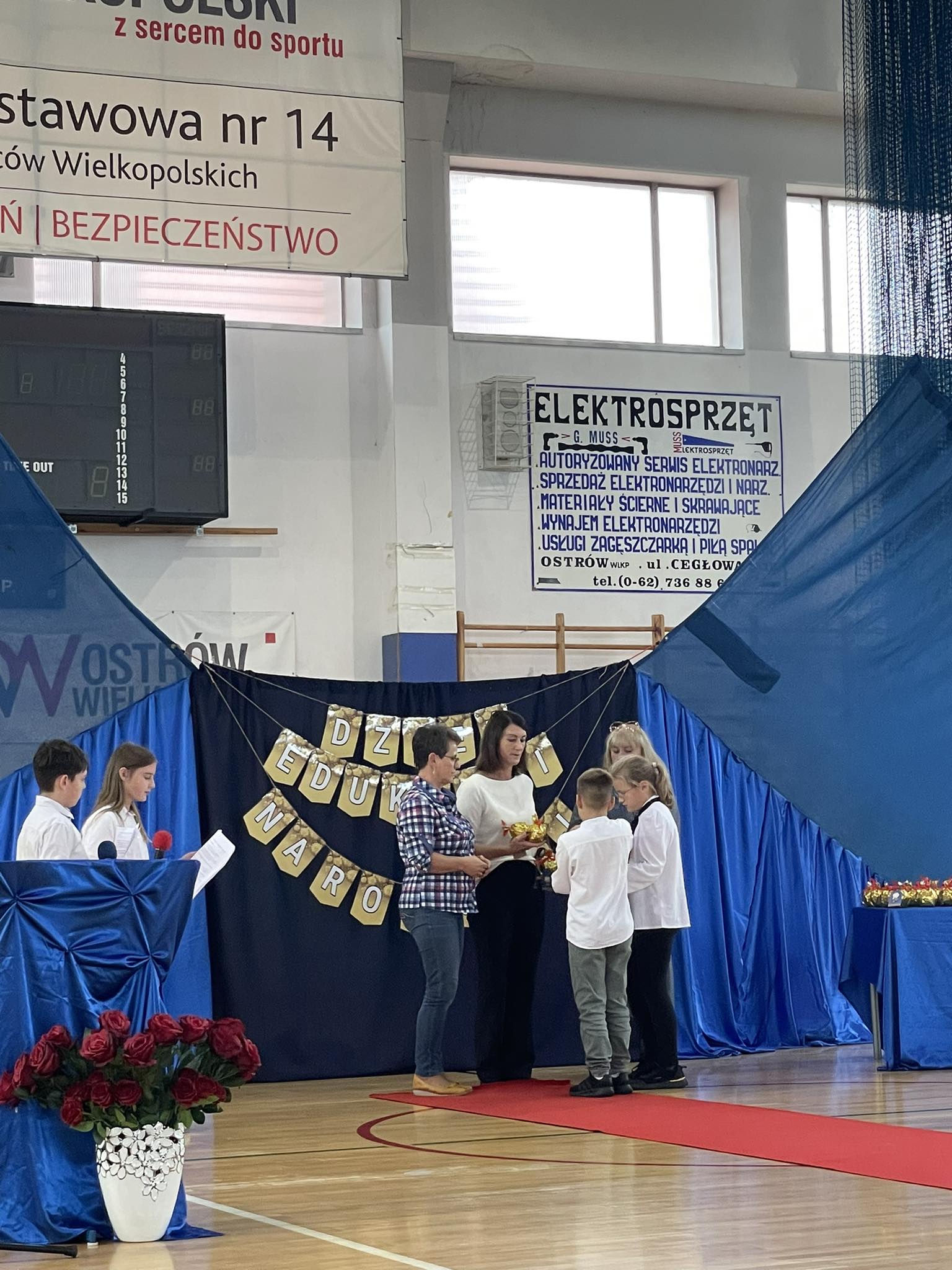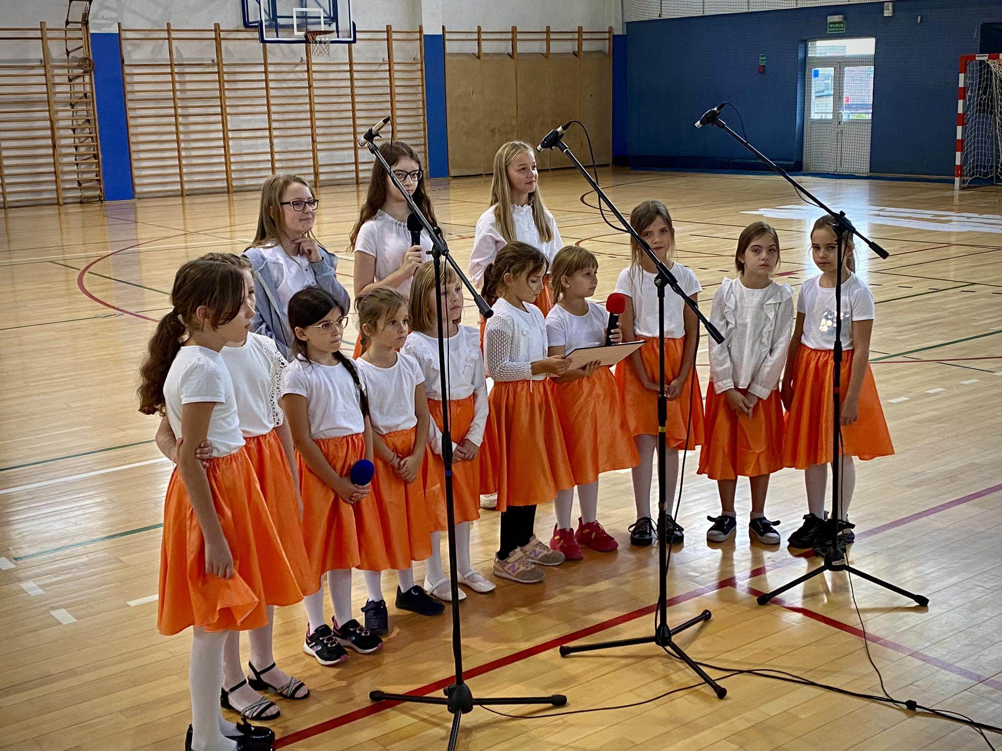 Dzień Edukacji Narodowej jest okazją do wyrażenia wdzięczności za wysiłek i serce włożone w pracę z dziećmi i ich wychowanie, symbolem pamięci o wszystkich pracownikach szkoły. To z tej okazji w czwartek 12 października br. cała społeczność szkolna spotkała się na apelu przygotowanym przez uczniów z klasy 3a i 6b. Młodzi artyści poprowadzili galę wręczenia złotych jabłek, a następne wierszem, tańcami oraz piosenką podziękowali pracownikom szkoły za pomocną dłoń oraz przewodnictwo na niezwykle ważnej drodze – drodze zdobywania umiejętności i wiedzy. O nauczycielach pamiętali również przedstawiciele Samorządu Uczniowskiego.