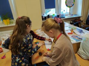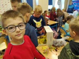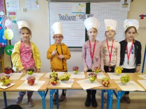 W ramach realizacji projektu ,,Z EKOLOGIĄ NA TY. Moduł – Eko zdrowie” uczniowie klasy 1b wykonali przepyszne owocowe jeże.