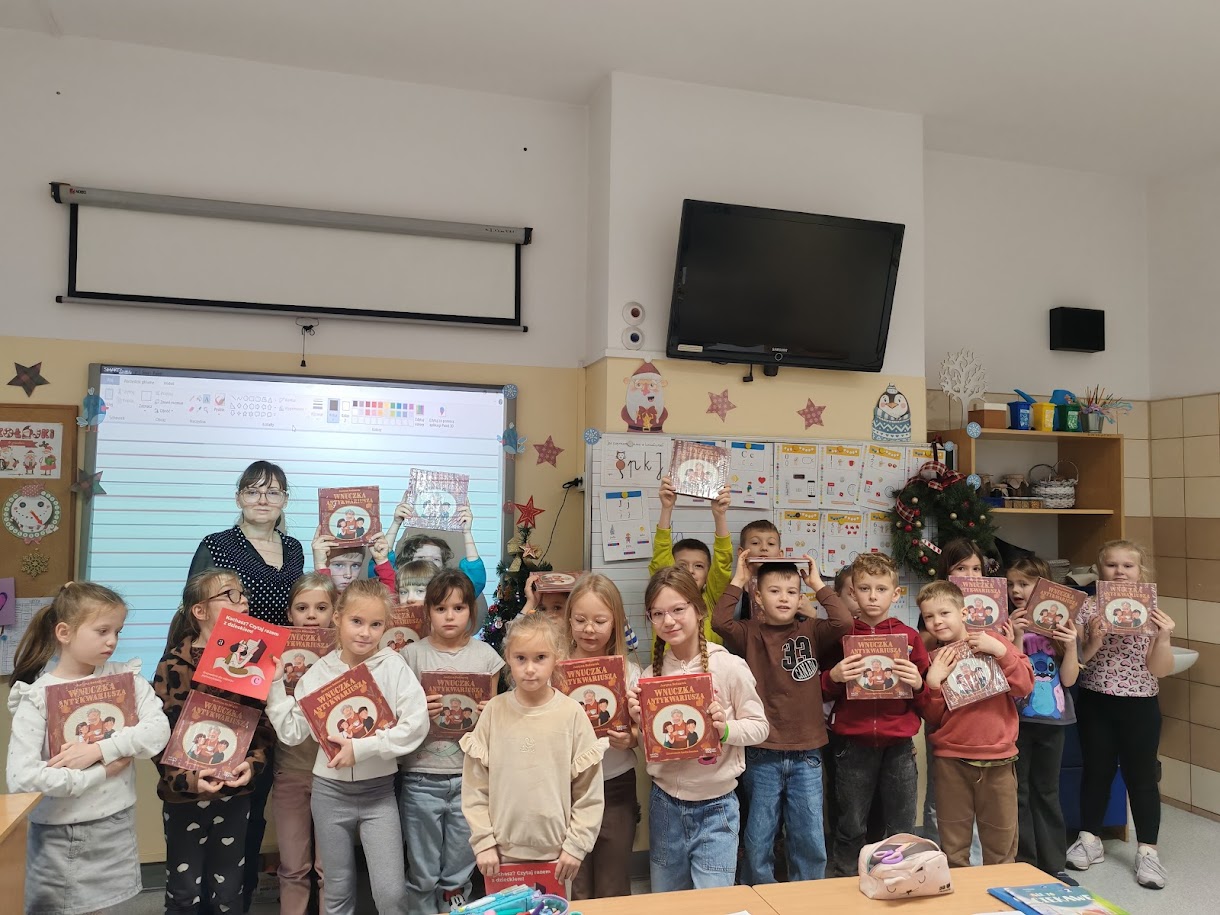 W grudniu uczniowie klas pierwszych uczestniczyli w projekcie „Mała książka – wielki człowiek”. Otrzymali Wyprawki Czytelnicze zawierające książkę „Wnuczka antykwariusza”, które umożliwią im naukę czytania oraz zachęcą do wspólnego czytania z rodzicami. Dla rodziców znalazła się tam broszura „Kochasz? Czytaj razem z Dzieckiem!” zawierająca informacje o korzyściach ze wspólnej lektury z dzieckiem. Dzieci były zadowolone z niespodziewanego prezentu.