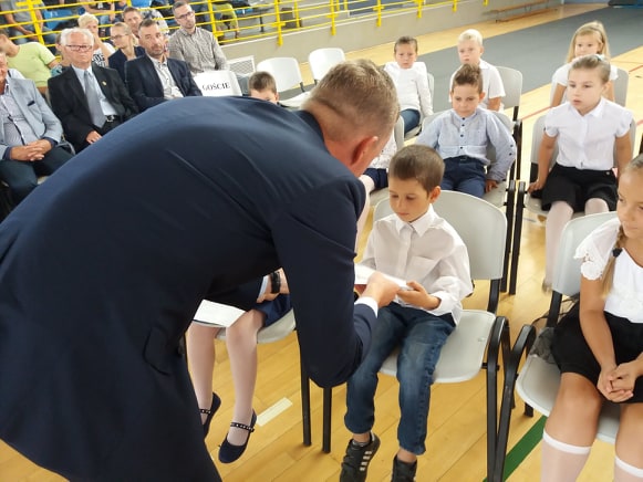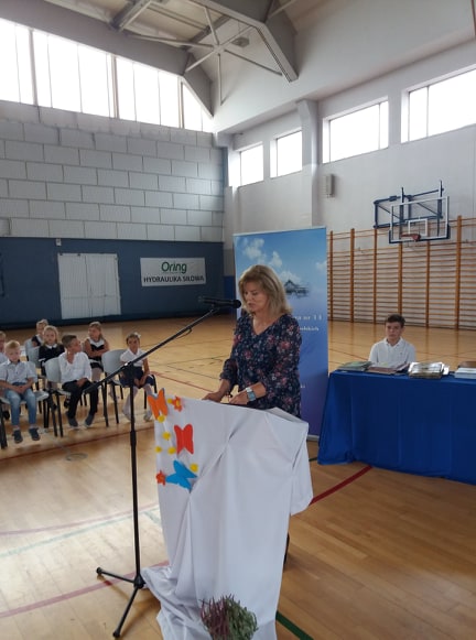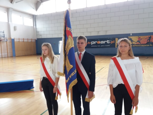 Przyszedł czas na pełne emocji wspomnienia tego, co miało miejsce 80 lat temu, gdy Polska została podstępnie zaatakowana przez hitlerowskie Niemcy. Wokół słychać było archiwalne nagrania z tych dramatycznych wydarzeń. Młodzi wykonawcy jak zwykle pięknie oddali cześć ofiarom II wojny światowej, by później, już w weselszym nastroju, powitać nowy rok szkolny i zaprosić uczniów na spotkania z wychowawcami klas.