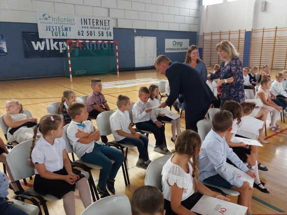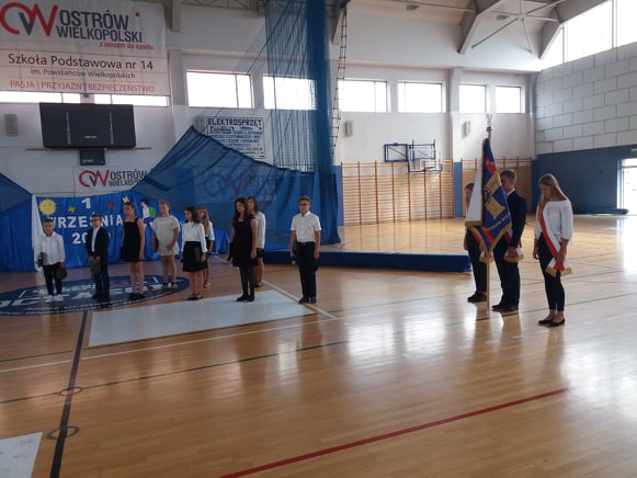 Zebranych w sali gimnastycznej Szkoły Podstawowej nr 14 w Ostrowie Wielkopolskim powitała dyrektor placówki Beata Dymna-Heine. następnie głos zabrał zastępca Prezydent Miasta Ostrowa Wielkopolskiego pan Mikołaj Kostka. Z jego rąk nowi pierwszoklasiści otrzymali okolicznościowy list od Pani Prezydent Beaty Klimek.