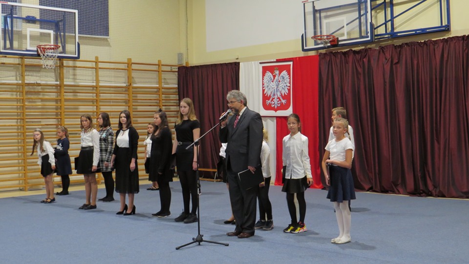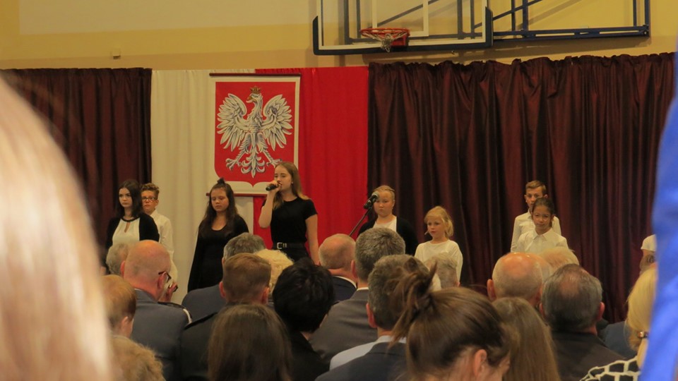 Sala gimnastyczna Zespołu Szkół Ekonomicznych rozbrzmiała śpiewem i recytacją wierszy w wykonaniu młodych artystów z 2a, 2b, 3a oraz 8a z naszej szkoły. ponadto wystąpiły dwie absolwentki z oddziału gimnazjalnego SP 14. Scenariusz uroczystości – już tradycyjnie – napisała p. Hanna Lesiewicz, która odpowiadała również za przygotowanie chórzystów, solistów i recytatorów oraz oprawę muzyczną. Nagłośnienie to dzieło p. Leszka Łukawskiego. Opiekę nad uczniami sprawowała i otuchy dodawała p. Anna Kaźmierczaki. Apel poległych wzbogacony był dźwiękami werbli w wykonaniu muzyków z ostrowskiej szkoły muzycznej.