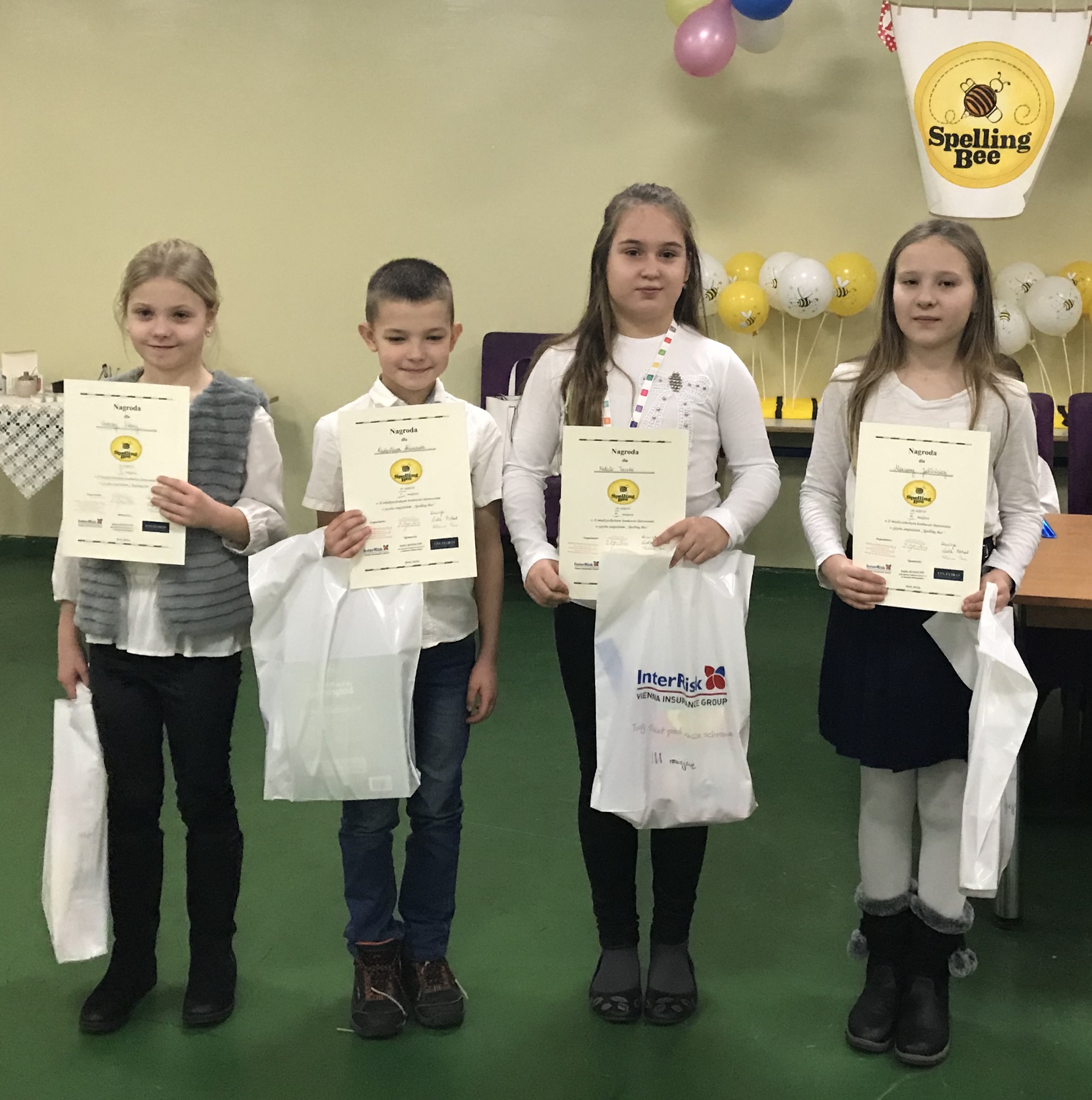 W dniu 10.01.2019 gościliśmy w progach naszej szkoły młodych fanatyków literowania w języku angielskim. 14 uczestników ze szkół podstawowych (Raszków, 6, 7 oraz gospodarze) na bardzo wyrównanym poziomie zapisywało przeliterowane przez komisję słowa oraz losowało wyrazy do samodzielnego literowania. Rywalizacja i emocje sięgnęły zenitu, kiedy trzykrotnie proszono uczniów do dogrywki. Ostatecznie wyłoniono następujących laureatów: