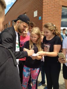 Dziś – dzięki zaangażowaniu taty Samuela z 2b – nasi uczniowie mieli niesamowitą niespodziankę w postaci odwiedzin jednego z piłkarzy Reprezentacji Polski. Pan Karol Linetty z chęcią zawitał do naszej szkoły. Nasi uczniowie mają pamiątkowe zdjęcia i autografy, otrzymali również piłkę dla szkoły z autografem. Chłopaki z grupy sportowej wyjątkowo cieszyli się z takiego spotkania. Szczególne podziękowania za zorganizowanie tej wspaniałej niespodzianki kierujemy do Pana Pawła Frasa.