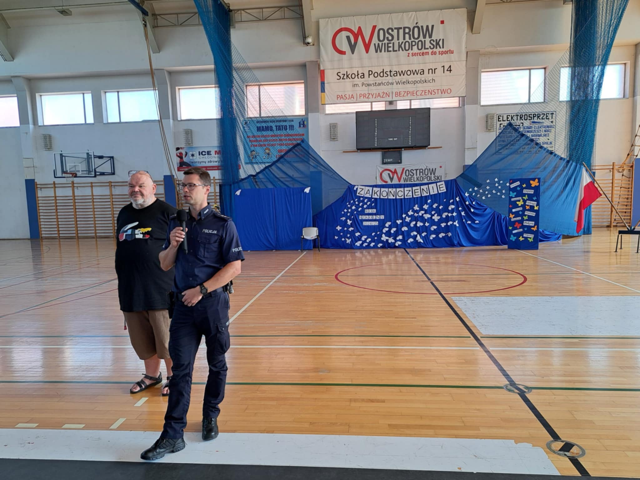 Podsumowaniem Tygodnia było spotkanie z aspirantem Konradem Tokarskim, który przypomniał uczniom o najważniejszych zasadach bezpiecznych wakacji.