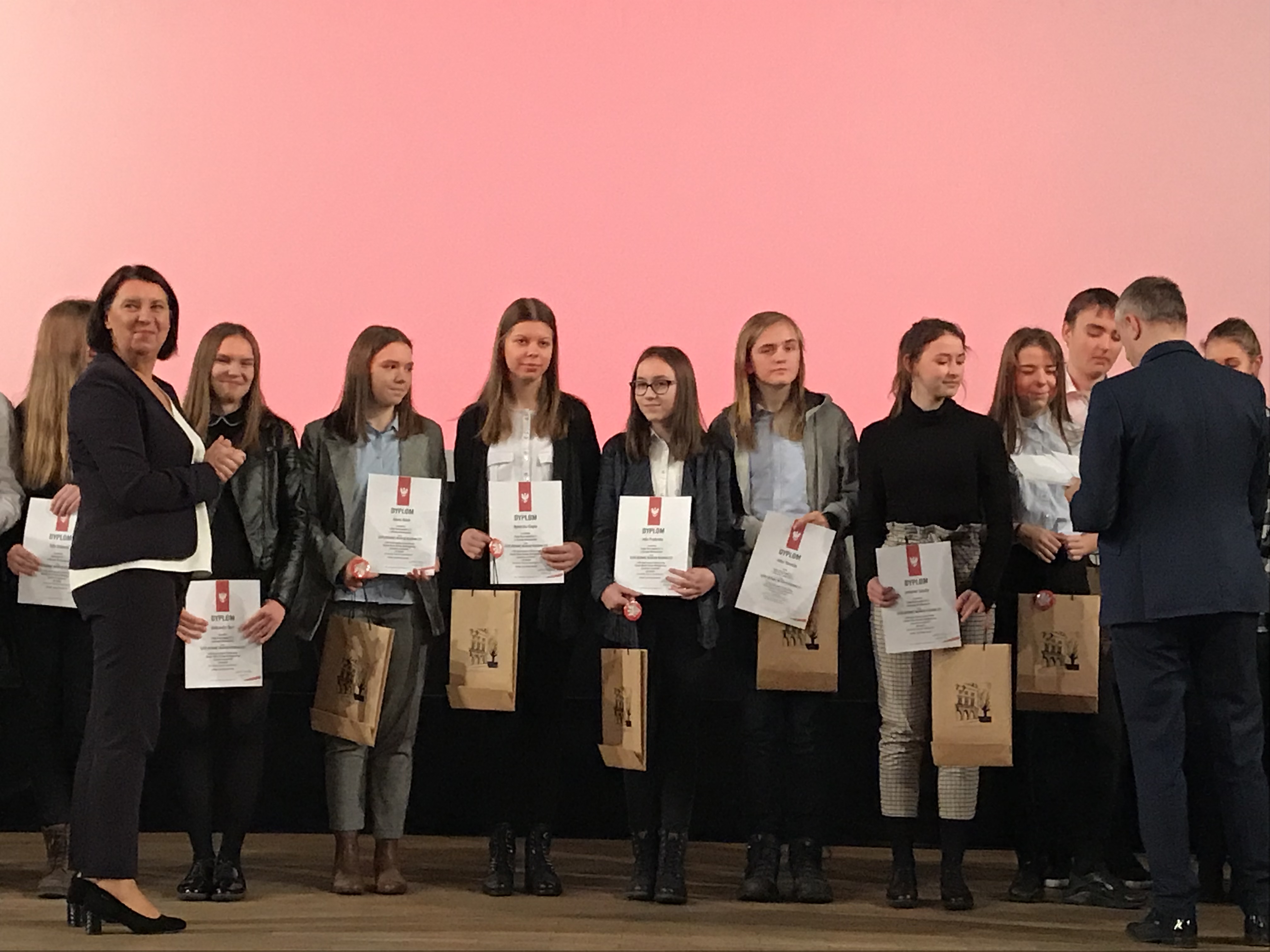 Starsi uczniowie i zarazem Laureaci Konkursu: Banasiak Jakub (8a), Ciupka Agnieszka (8d), Dura Aleksandra (8d), Przybylska Julia (8d), Rosik Joanna (8d) oraz Szyszko Antonina (3a).